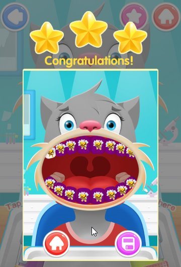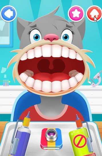 Like this cat in the above screenshot has pretty dirty teeth. You will see plenty of tools in front of you to help you out clean the teeth. There is a check mark list given on the right side, which will check mark a box after the tool it represents has completed its work. Start using the tools one by one and clean the teeth of your patients.
