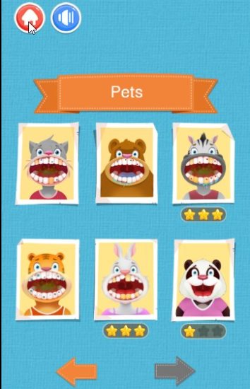 You can select anyone to work upon their teeth. You can use the forward arrow button to go to the next page which will have all the pets on it, as shown in the screenshot below.