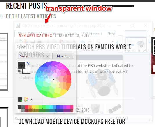 If you don’t want to move the active window, you can set the option to make the window transparent automatically. After that, whenever you will bring the mouse cursor over that window, it will become transparent, instead of moving aside.