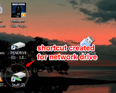 After this, whenever you will insert your USB flash drive or a mapped network drive is shared with you, desktop shortcuts for them are created automatically.