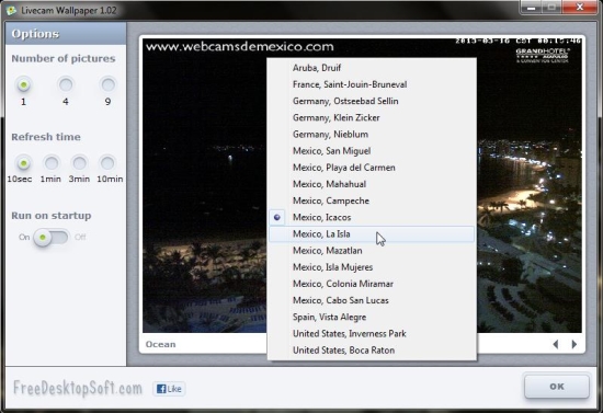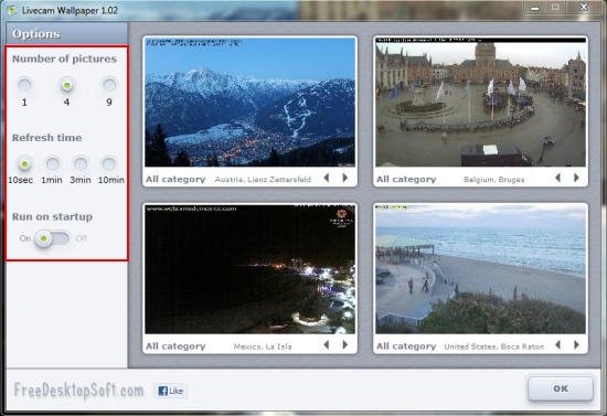 This free wallpaper changer shows a list of available cameras under that category when you right-click on the preview of the wallpaper after choosing a particular category. From here you can browse plenty of beautiful scenes from all over the world to set as your desktop wallpaper.