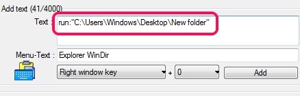 Other than this, as mentioned above, you can use this program as an application launcher. So if you want to quickly open an item using a hotkey. Then simply provide the path of that item starting with “run:” in Add text option. For example, if you want to open a folder available on your desktop with a hotkey, then write- run:”C:Users\Window\Desktop\Folder name” and set a hotkey for it. Now, whenever you will use that hotkey, the same pop up will open in front of you and you can access that folder.