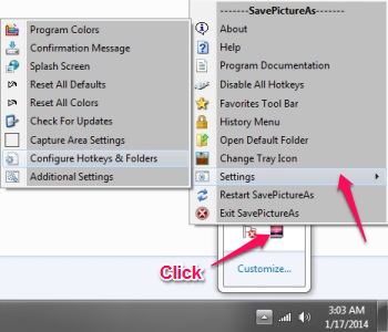 The Favorites Tool Bar can be used to quickly change the default folder where this software saves the file. This option can be accessed from the menu by clicking on the system tray icon for SavePictureAs. Apart from these options, you can customize it more to change the color for the notification window, change the setting for the capture area, etc.