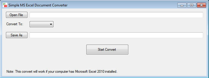Open up either the XLS or XLSX Excel documents that you want to convert by clicking on the Open File button in the top left corner of the application. Before this you need to make sure, like we already mentioned, that you have Office 2010 installed.