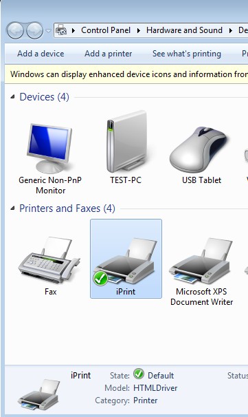 This free printout optimization utility works as a virtual printer. What does this mean you’re probably wondering now. It means that when you would like to optimize a printout instead of selecting your actual printer, the one that’s connected to your computer, you’ll have to select the iPrint printer which is gonna be created in the Printers & Faxes of the Window Device Manager, see screenshot below. This allows you to print optimized documents from any application.