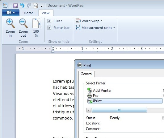 Next open up the application from where you’d like to optimize your printouts. Open up the document and select what you would normally select when printing File >> Print. Only now instead of selecting your default printer, select iPrint.