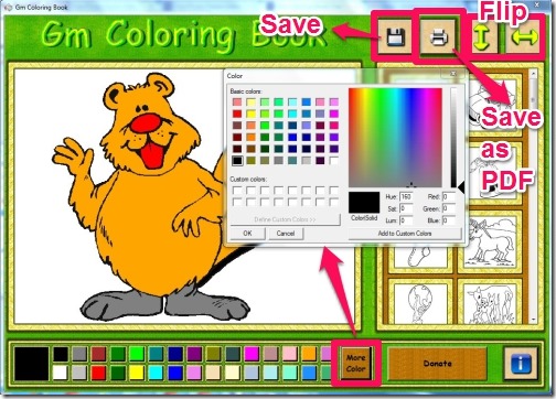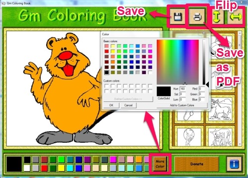 Gm Coloring Book is a free coloring book software that helps children to enhance coloring skills in a fun way by recognising colors. This coloring book application offers 50 drawing templates that children can use for coloring. It provides you many colours and further lets you add more colours with the help of RGB color panel.