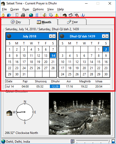 Using this Free Salaat Time Software with Azaan, Qiblah Direction, Islamic Calendar: