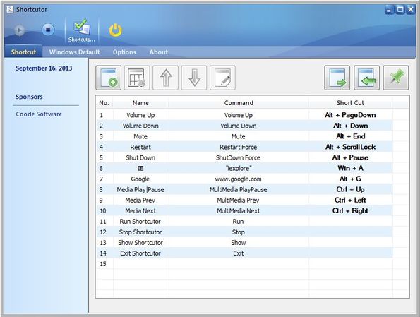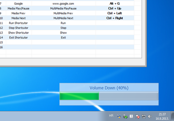 Shortcutor is a free Windows keyboard shortcut creator and editor which you can use in order to create keyboard shortcuts for important system functions like changing the volume level, muting audio, running applications, controlling media playback and so on. This is very useful when you don’t have special multimedia keys on your keyboard, and of course when you need to launch special applications and commands using the keyboard.