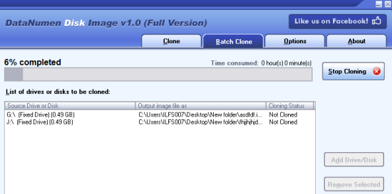 Step 5: Once all the required drives are added, you can start the image creation process. Just tap Start Cloning button and process to create images of drives will begin. One by one, separate images for each drive will be created.