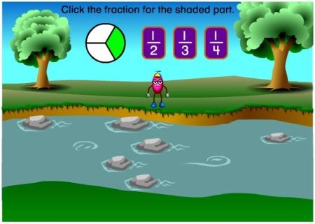 Cross the river is a third grade online math game in which you need to cross the river by clicking on the correct fraction out of the options available for the shaded part. Note that if you choose a wrong answer you will fall in the river. So choose correct answers and cross the river.