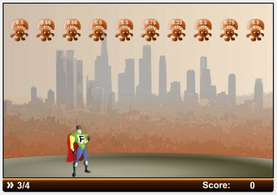 Decimal hero is one of the fifth grade online math game, in this game you need compare each fraction to equivalent decimal. You need to press the space bar to hit the equivalent decimal for fraction problems on the screen.