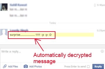 Using this extension, you can send an encrypted message or encrypted emails to your friend(s) on websites such as on Facebook and Gmail. And for reading your encrypted message, your friend will only need this extension installed on his/her computer and your key. Just with these two items, your friend will be able to read your encrypted messages.
