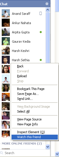 In order to add people to your watch list, you can open up your Facebook and right-click on the people you wish to follow from the chat menu on the right side. You need to right-click on the name of the person from the chat window and select “Watch this friend”. That’s all you need to do, and you would be updated as and when the people on the list change their status messages.