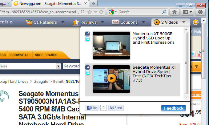 Next when you find what you are interested in buying, you should see new options being added to the ProductBee toolbar. Suggestions for other stores holding the same item only cheaper, reviews and product videos will become available.