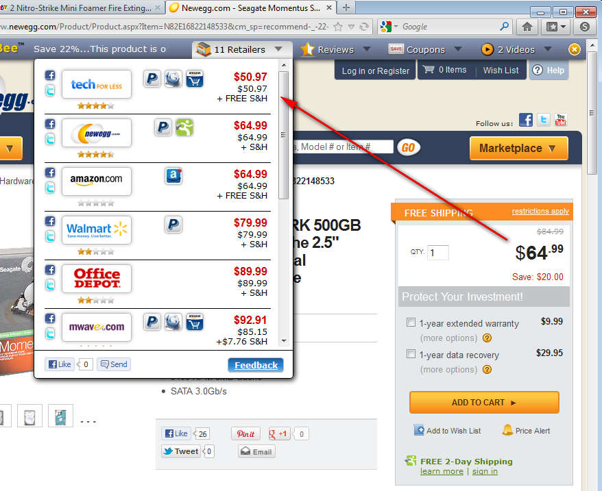 ProductBee is a free price comparison add-on for Firefox, Internet Explorer, Chrome, and Safari which works as a toolbar. And it opens up as soon as you visit one of the numerous supported online stores, like for example eBay, Newegg, or Amazon. It won’t just search for sellers which are offering cheaper items, it also suggest coupons that you might use and special deals on which can save your money.