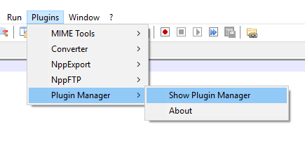 Step 1: Open Notepad++ → Plugins menu → Plugin Manager → Show Plugin Manager. It will open Plugin Manager window.