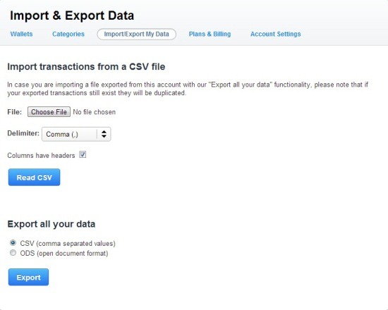 This app has the ability to export your data in CSV or ODS formats. It also enables you to import the bank statements whenever you wish. This feature enables you to make use of the data in offline mode.
