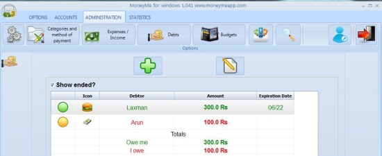 MoneyMe is a free, personal finance manager for Windows that lets you track your income, expenses, debts, and budgets. It’s a simple and easy to use application designed to help you manage your personal finance in a convenient way. With MoneyMe, you can systematically record all your expenses, debts, and budgets, and later track them using statistics reports.