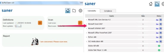 SecPod Saner is a handy Windows vulnerability scanner software that scans, analyzes your system status, determines outdated files, components, and helps to fix problems. Outdated software and obsolete files remain more vulnerable to threats, like Malware and viruses. These security holes could cause the threat to PC and viruses or malware can attack your PC to obtain personal and confidential data from your PC. SecPod Saner helps to scan for those software, files, and lets you fix problems in a single click.