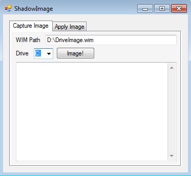 Everything is pretty much simple and automatic. To create a backup, open up the Capture Image tab, type in the path where you want to save it, with image name and extension (WIM), select the partition that you want to backup using the drop down menu and after that simply click the Image button to start creating the partition backup.