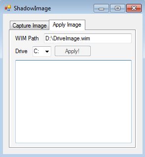 Despite doing a very complicated task of creating system partition backups, ShadowImage comes with a very simple interface. It only has two tabs in the top left corner, one for creating backups and another one for restoring created images.