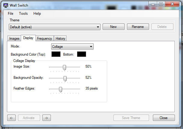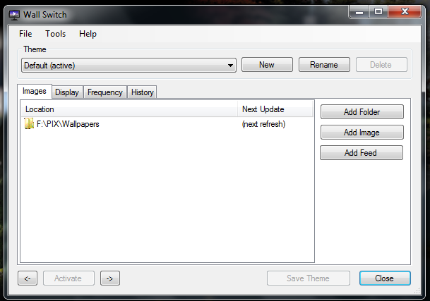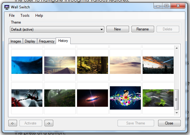 • WallSwitch comes with a blunt but user friendly light gray interface. It has got 4 tabs namely Images, Display, Frequency and History, which allows the user to navigate through its various features.