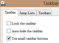 - Here in this window all you need to do to reduce the taskbar size in Windows 8 is to check the check box which says “Use small taskbar buttons” as shown in the screenshot below and then click on the Apply button or Ok button; These buttons are located in the bottom part of the window.