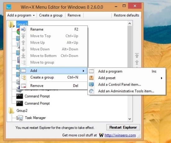 The first thing that you are supposed to do is download the Win+X menu editor in order to change the WinX menu in Windows 8. To download this free utility click on this link.