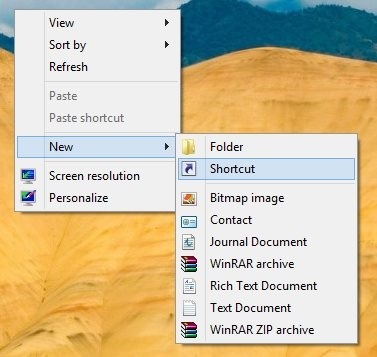 First thing you have to do is switch to the desktop mode by clicking on the desktop tile. Now that you are on the desktop just right on the desktop to open up the context menu; then you need to navigate to the “new” option from the menu and then click on the “shortcut” option from the sub menu.