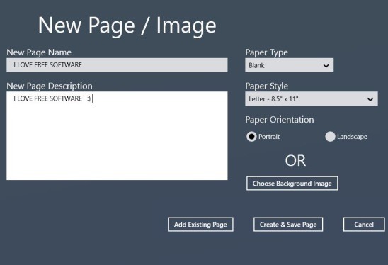 Notebook Pro is a free Windows 8 Notebook App. It is quite a good notebook app for Windows 8, which you can either use as a simple notebook app to take simple notes, or write journal, or as a drawing, designing, or word processing app. The app consists of multiple good features, and these includes: choosing from different page type, page style and layout, changing font style, sizes, color, alignment, and transparency. Plus you can add images on the pages and rotate/scale them, or draw freely on the page and change the brush settings.