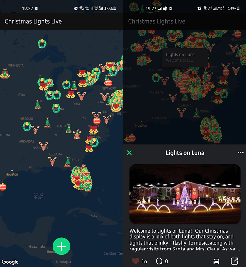 On most of these apps, you don’t have to create an account in order to explore holiday lights. Just install them, allow the permissions that they ask for and then simply start exploring the decorated places around for you. All those places have their exact addresses listed there as well as location on the map. Also, on most of these apps, the places that you see are verified and actually exist. So, if you want to visit them to click pictures or anything then you are free to do that.