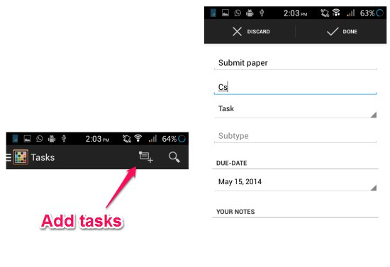 Also, the same menu lets you access and add tasks, exams, and holidays. Simply tap on the add button on the upper right corner of the app and you will have the interface as seen below, now you can add the details. As an example, I have only shown tasks, others also work in a similar manner.