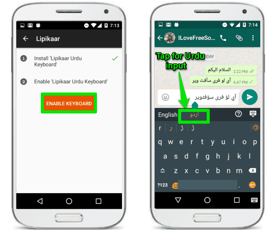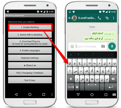 To get started with it, grab it from the above link and install it on your Android phone. After installation, open it up and enable it to come into action. To enable it you will have to follow some easy steps that the app will guide you. When the keyboard app is enabled, you can start writing your Urdu text with it.