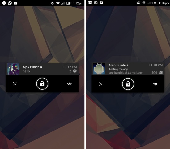 Notify Me! for Android offers a quick way of interacting with your notifications. Read the notification without unlocking the lock screen or jump directly into the app with a slide. It removes the part of turning on the display then sliding the notification panel which in turn makes things really streamlined. Also the feature of customizing the behavior of individual apps is great. If you are using any device below ICS then the function of expanded notification will not be available.