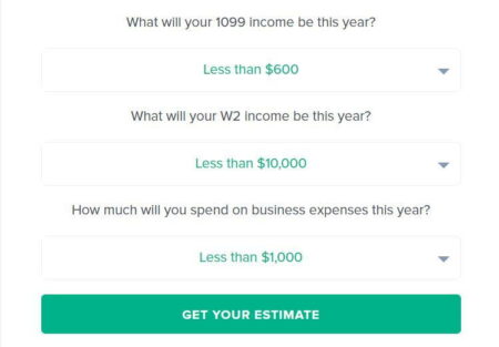The calculator will ask you to answer some basic questions like the state you live in, your filling status, income from W2 & 1099 forms, and expenses you incurred in your business for the year.
