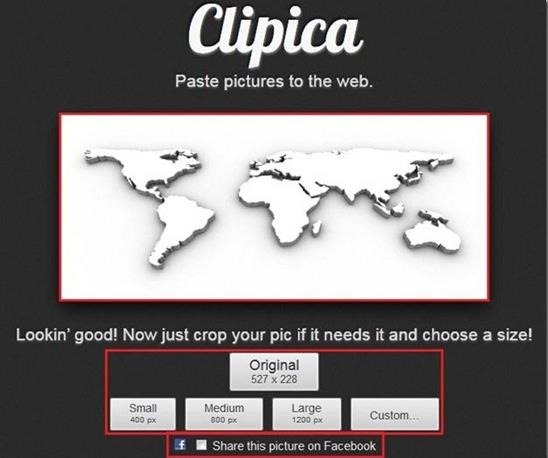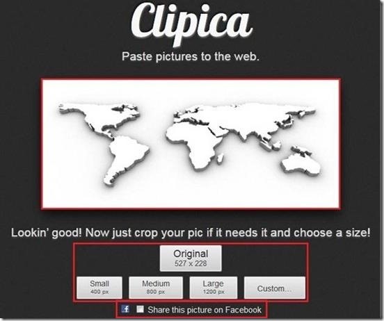 Clipica is also a free image hosting website that lets you upload and auto-share uploaded images to your Facebook Timeline. You can sign-in using your Facebook account, and then you can drop or copy-paste the image on the interface of this website.