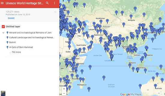 The map on Google about the World Heritage sites is accurate but it doesn’t include the history or in-depth detail about a particular monument. You can just click on the marked location on the map to see the corresponding world heritage site.