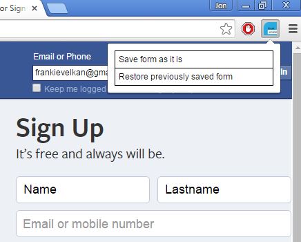Reason why I’m recommending it is because it won’t work automatically to save the form data. It only saves it when you select the “Save form as it is” option by left clicking on the top right corner icon. It isn’t as practical as the two previously mentioned form recovery extensions, because it’s not automatic, but if you’re looking to do it manually, to have more control, then definitely have a look at Form Save And Restore.