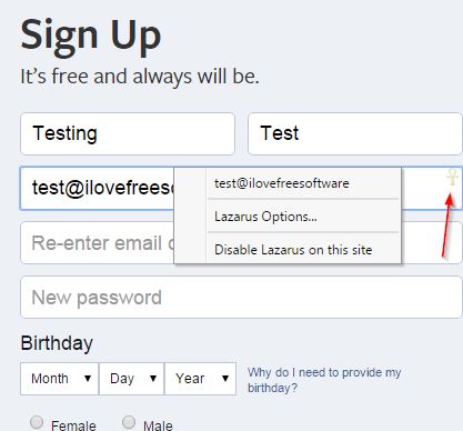 Lazarus: Form Recovery starts working as soon as you install the extension. You’ll be able to see it as a small cross icon in the top right corner of input boxes on the form, see image above.