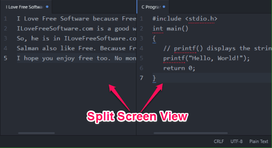 This is a list of 5 best free notepads with split screen view. They can be used to split the screen of the notepad into multiple panes such that you can get two or more views of the same file and also browse around to have a clearer overview of any file. The split screen view can also come handy in case you want to compare files and then do the editing as required.