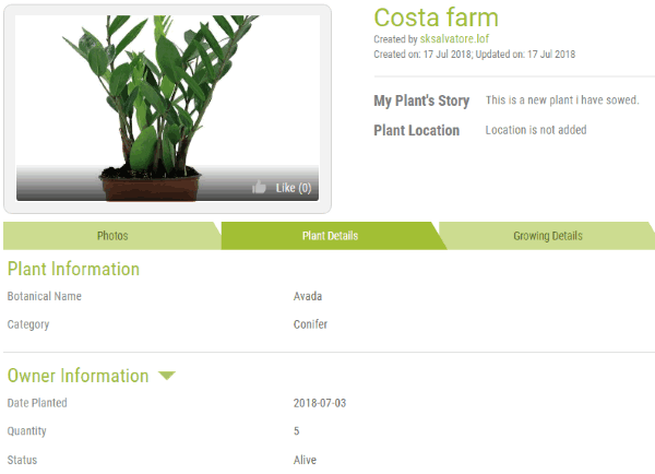 Now, under the growth details section, you can add the following information about your plant:
