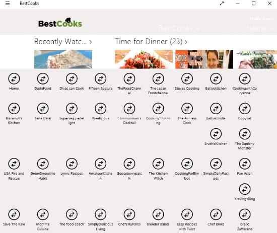 BestCooks has a huge collection of recipes from all over the world. You can see recipes from popular chefs as well as home chefs. The advantage of the app is that a lot of recipes have a video accompanied with the text directions. So you can see how things are being done and follow along. You will find all sorts of recipes like vegetarian, cakes, salads, kids, Thanksgiving, Christmas, drinks, pizza, pasta, etc. The home page of the app can be seen above. It will list all the popular recipes on the home page. When you right click on the page, a list of all the chefs, channels included will come up, as can be seen above. You can choose any channel you would like to check out. Each channel has lots of recipes listed under it.
