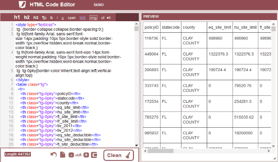 This Online WYSIWYG HTML Editor (Homepage) is actually helpful to create a new HTML file or edit the HTML and see its HTML data. But, it can also be used in opposite way. You can paste HTML table data on the right side and then it will show HTML table output on the left side.