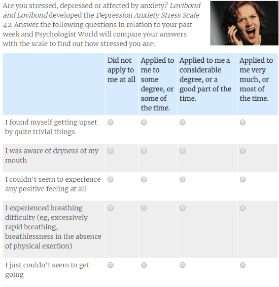 Stress Test from Psychologist World is an extensive stress test. It has more than 40 questions that are related to stress and anxiety. There are 4 options for you to rate how you feel about the asked question. It also asks you about your gender, age, and location, so that it can compare your data with people belonging to your age group and area.