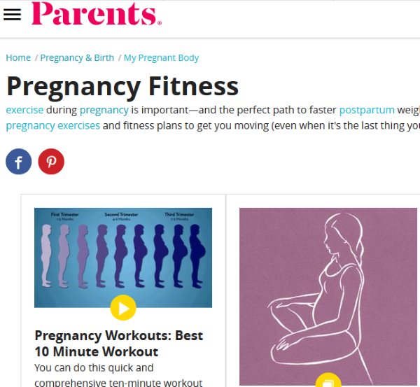 Parents.com is a nice website for parents and parents to be. The website covers a lot of topics on parenting, pregnancy, baby names, health, food, etc. They also have a dedicated section for pregnancy fitness. There are a wide variety of exercise related topics which are covered in this section. You will find workout plans like best 10 minute workout according to which trimester you are in, prenatal yoga workout, first trimester workouts, second trimester workouts, third trimester workouts, benefits of walking, easy beginner exercises, etc. You can go through these topics, and see which one suits you. Do consult your doctor before starting these exercises.