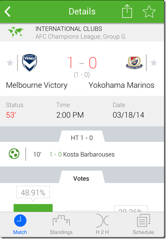 SofaScore is the app which provides you the latest score updates about the matches being played in 14 different sports. The app includes sports like Soccer, Basketball, Ice Hockey, Tennis, Baseball, Rugby, Handball etc. You can pin the sports you follow so that the live updates about them will be shown to you at top. Besides this, you can check the table standings, head-to-head matches, complete schedule and other interesting things about the ongoing matches.