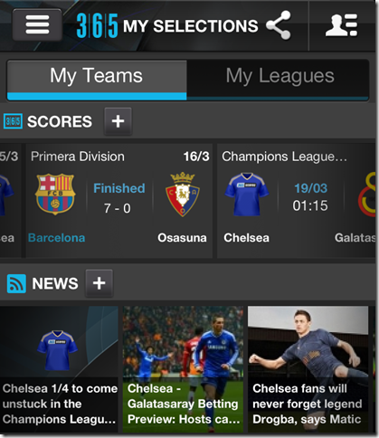 The next app in the list is PlayUp. This app is like a social network app for all the sports lovers. The app has a section called Playground where all the sports feeds are displayed to you. You can also select your favorite teams and tournaments to get updates specifically about them. The app lets you send direct message to other PlayUp users so that you can connect with them. You can get the live scores of the matches from any sports by going to the Sports & Scores section.