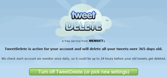 It will daily monitor your tweets and delete tweets with applied settings. Whenever you don’t want to delete tweets anymore, you can turn off this service using the available button.
