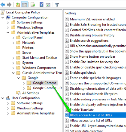 Block Specific Websites in Google Chrome using Windows 10 Group Policy